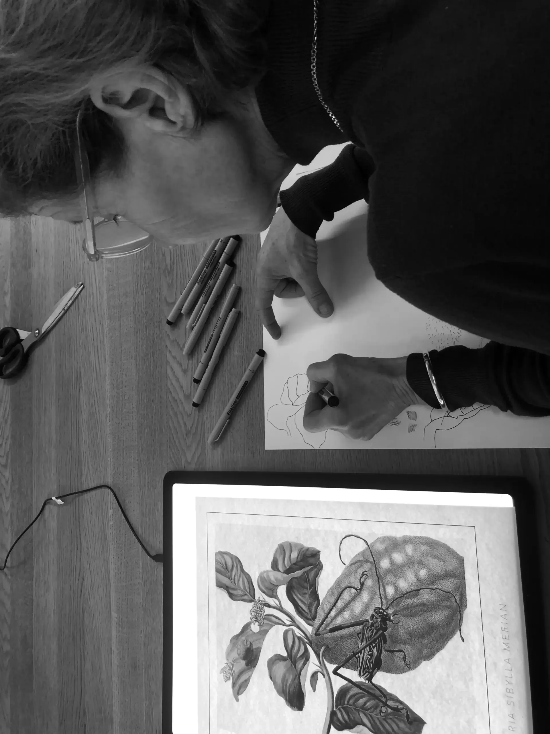Wij blazen deze historische werken nieuw leven in! we vergroten de originele afbeeldingen en vullen ze in met gebruik van fineliners en donker & licht structuren.